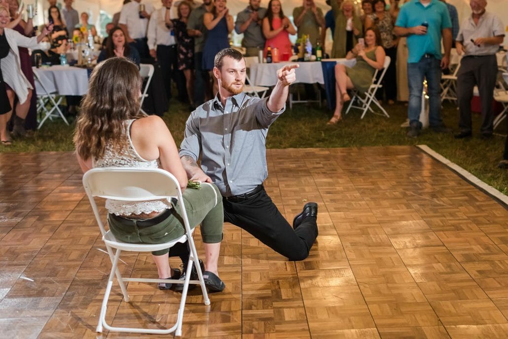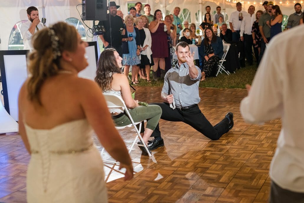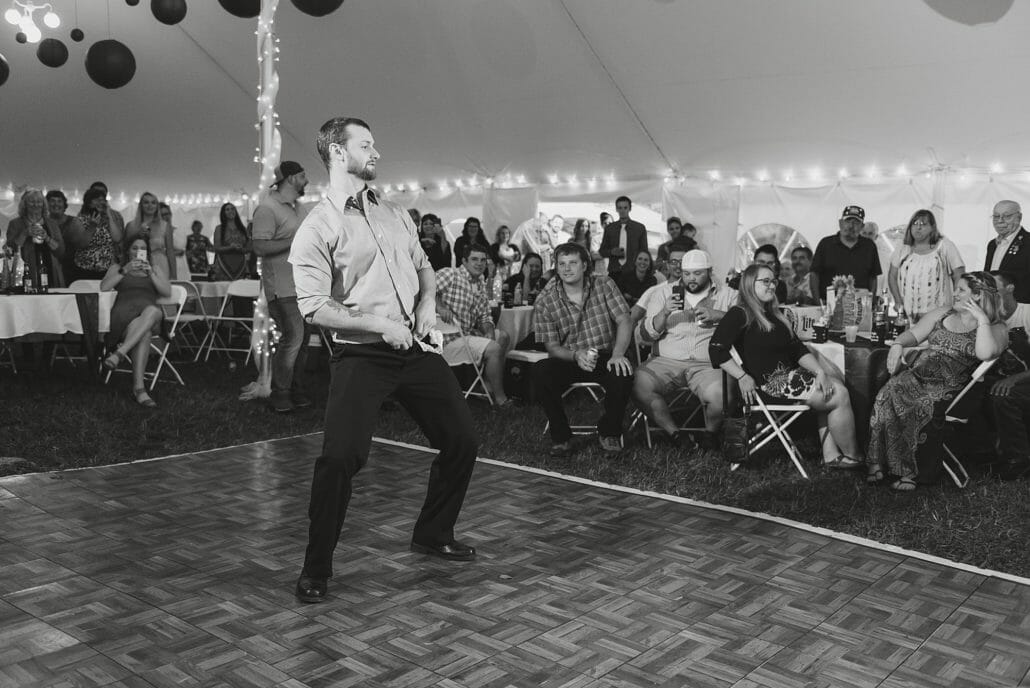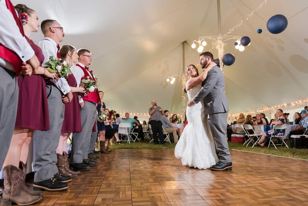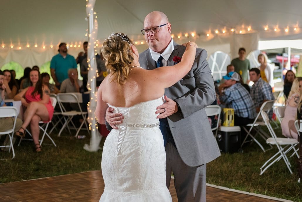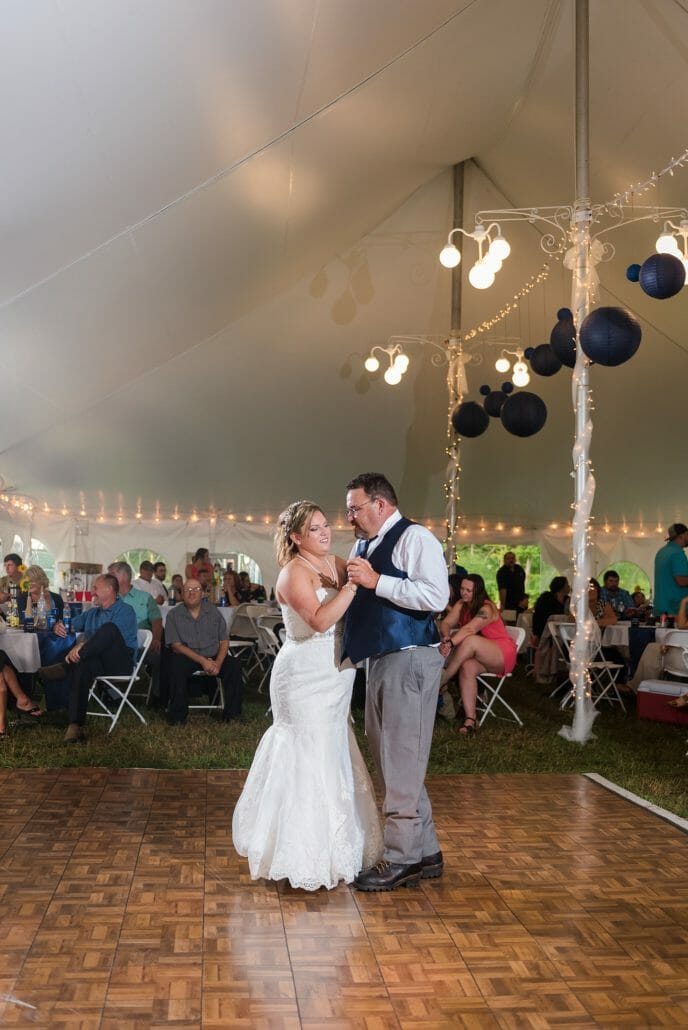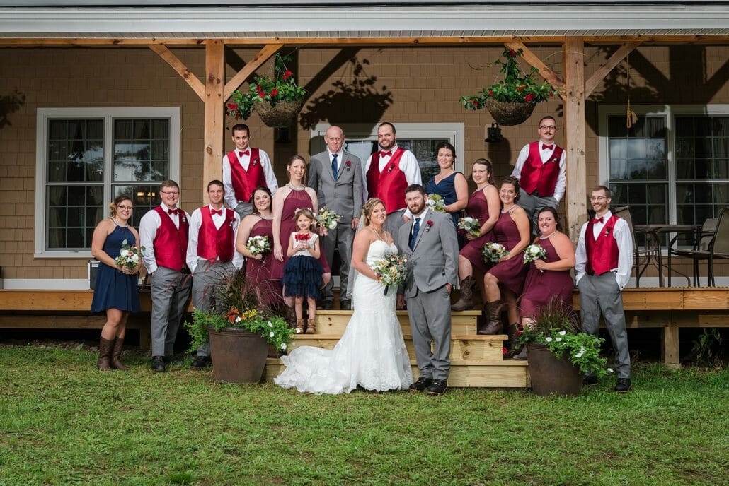 Venue and Catering: Private Residence in Hardwick, Vermont | Bakery: Karly Bombard | DJ: RPM Entertainment| Hair Artists :Stairway to Style| Makeup Artists: Brooklyn Gochey | Bridal Gown: David’s Bridal | Groom’s Boutique: Sewing Basket & Jim’s Formal Wear